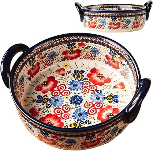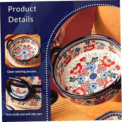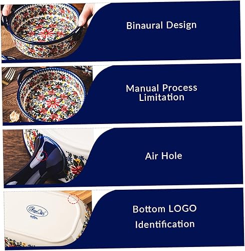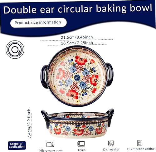 Casserole Plats pour le four | plat de cuisson, plat de four en céramique résistant à la chaleur à deux poignées, plat de lasagne rectangulaire à imprimé floral, casserole lavable non glissante pour