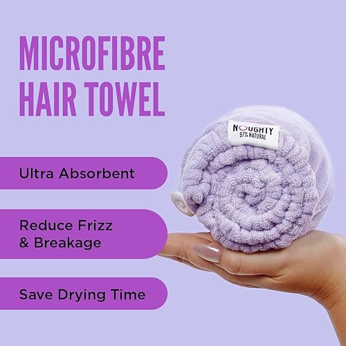 Noughty Serviette en microfibre 97% naturelle, absorbe rapidement l'humidité, réduit la casse, combat les frisottis, violet
