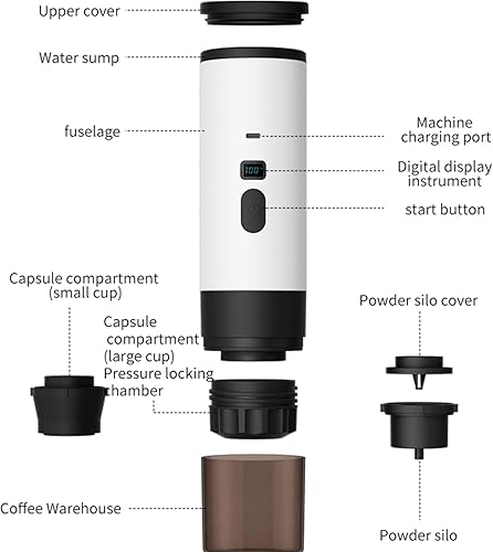 Générique Machine a Cafe Portable, 3 En 1 Cafetière Portable Avec Écran LED et Connecteur Type-C, Cafetières à Multi Capsules Avec Chauffage Automatique Pour Le Camping, Bureau, Maison, Voiture