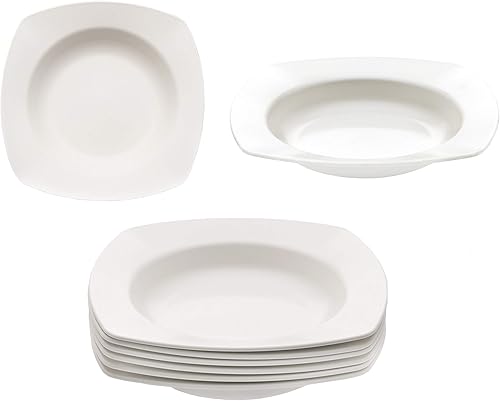 KM · Living Lot de 6 assiettes creuses réutilisables en plastique blanc crème 20 cm (fabriquées en Allemagne/incassables/sans bisphénol A/passent au lave-vaisselle et au micro-ondes)