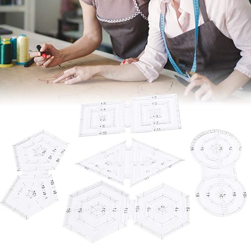 Tissting 5 Pièces Transparentes Couture Règle Ensemble Modèles Créatifs Quilting Règles DIY Manuel Double Rond Pentagone Hex Triangle Couture Coupe Artisanat Outils À la Main Dessin Fournitures