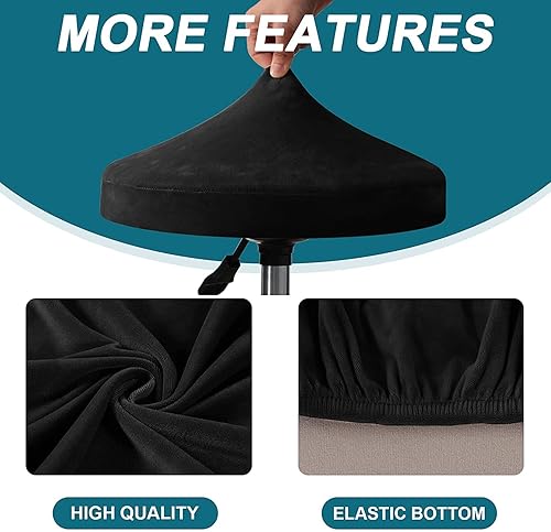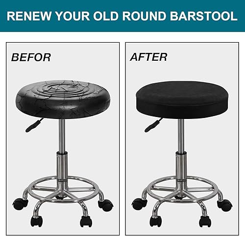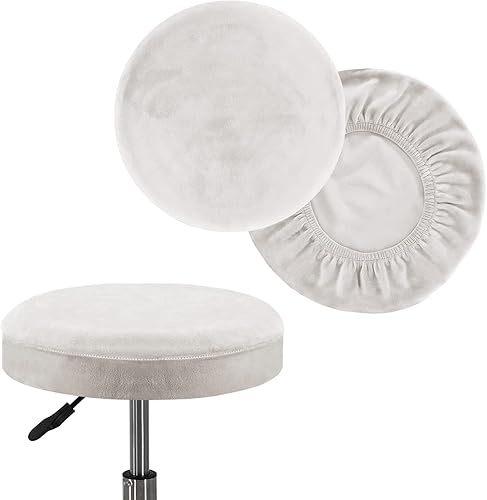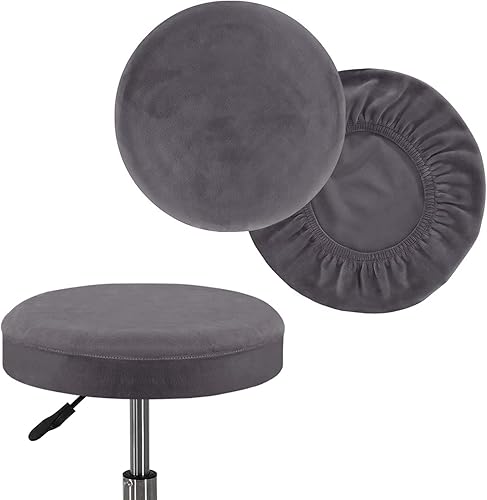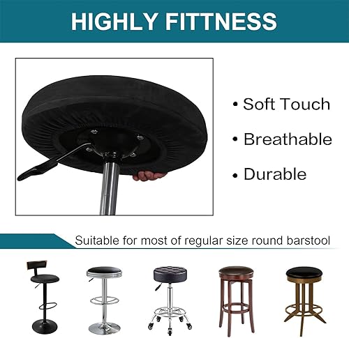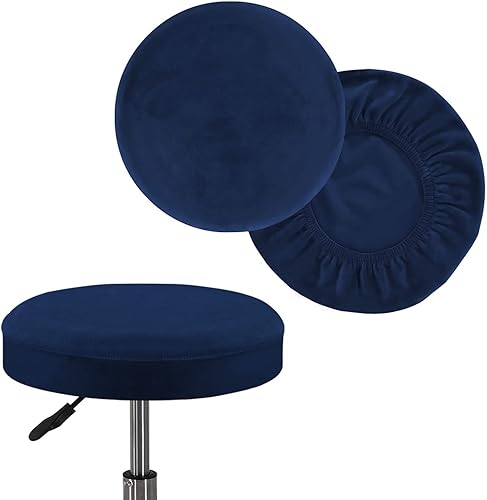 FASCINATDECO Housses de Tabouret Rond, 2 Pièces Housse de Siège de Tabouret de Bar Extensible Velours Couvre de Chaise Ronde Housse Tabouret Pivotant de Bar Rond Lavable (Bleu Paon,Moyen)