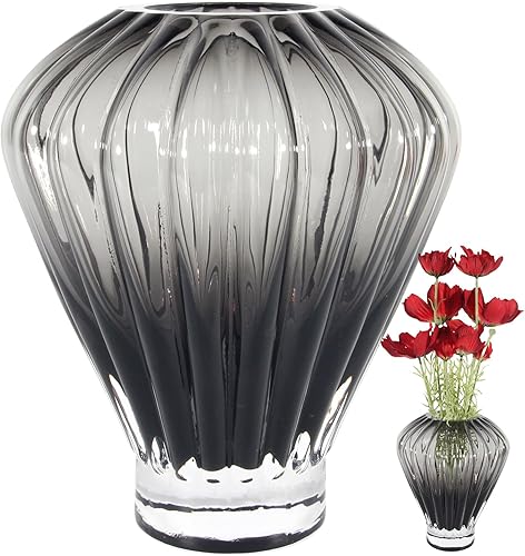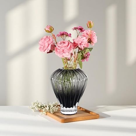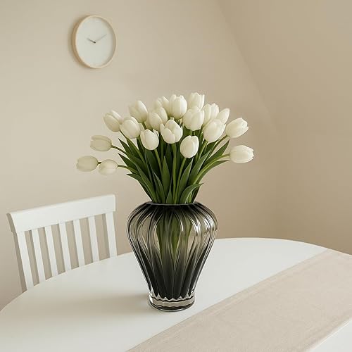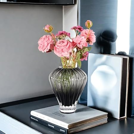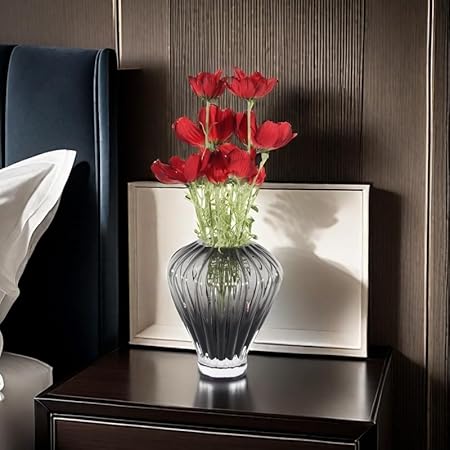 Vase en Verre Moderne – Vase Décoratif Entièrement Fabriqué à la Main pour Fleurs, Tulipes, Roses – Idéal pour Salon, Chambre, Table ou Mariage – Déco Maison Élégante – Noir