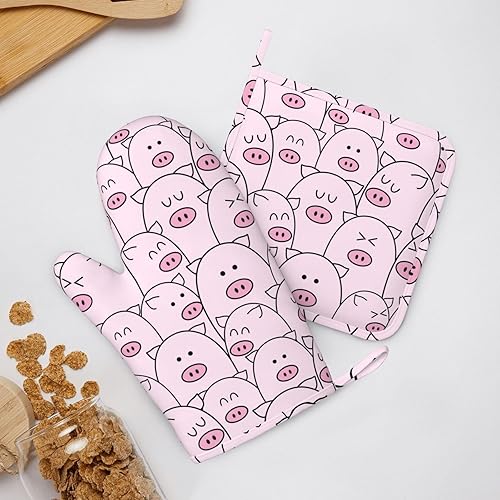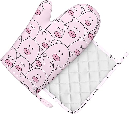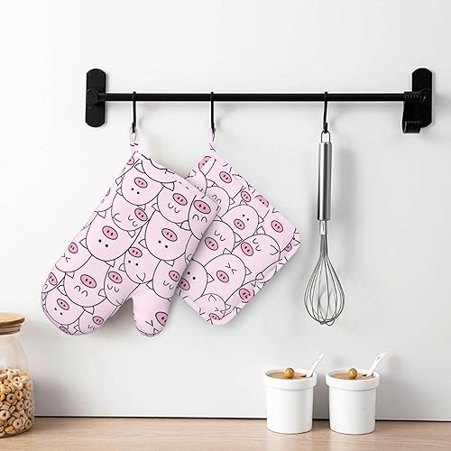 Lot de 2 maniques et maniques en silicone résistant à la chaleur Motif cochon abstrait Rose