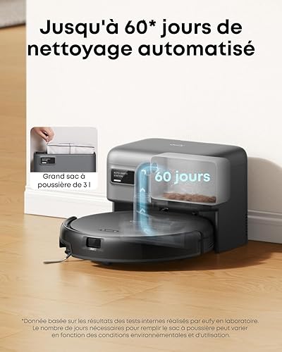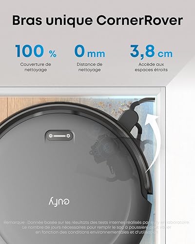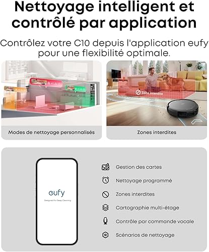 eufy C10 aspirateur robot avec station d'aspiration automatique, design 7,2 cm ultra-plat, nettoyage tapis, brosse extensible coins, vidage automatique, point laser et navigation infrarouge