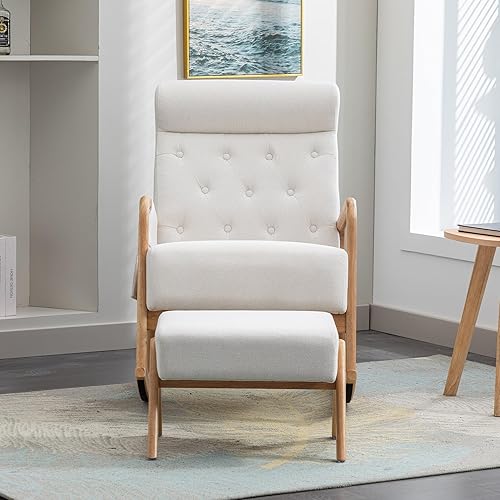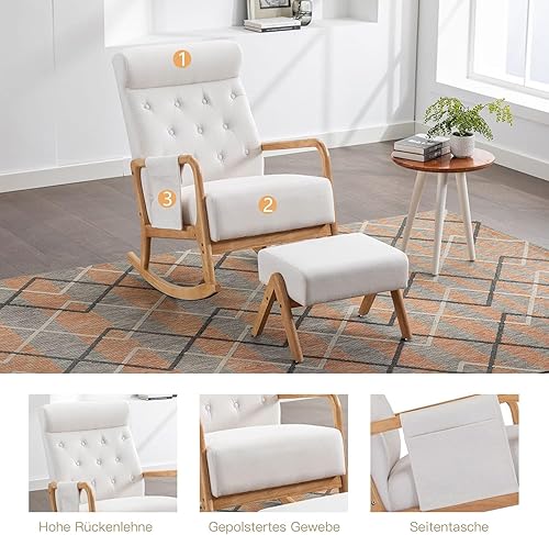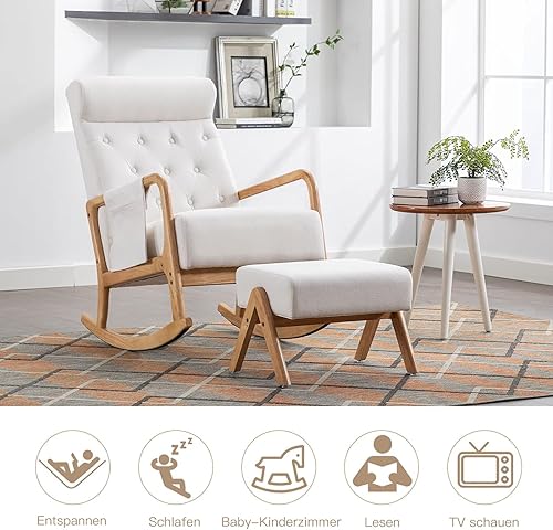 SUPPNEED Fauteuil à bascule avec ottoman, pour chambre d'enfant, en tissu rembourré, avec dossier haut, pour salon, beige