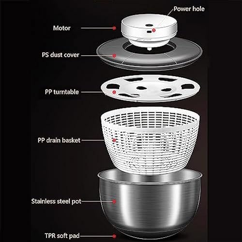 OPSREY Essoreuse à Salade électrique, séchoir à laitue Automatique de 4,8 L, Lave-Salade en Acier Inoxydable, Rechargeable par USB, pour Salade Verte, laitue, Fruits et légumes