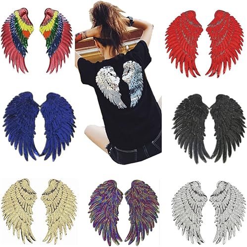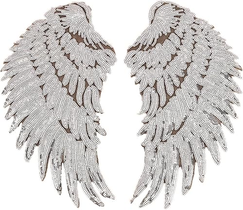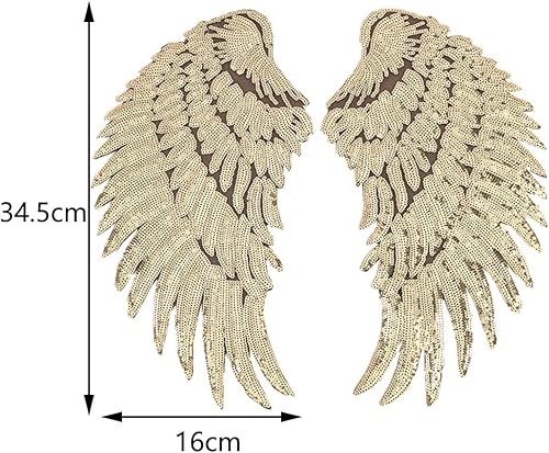 Anawakia Lot de 1 paire de patchs thermocollants - À repasser - Broderie à paillettes - Motif ailes d'ange - Pour t-shirt, jean, vêtements, sacs - 1 paire - Doré - Taille S : 26 x 13 cm