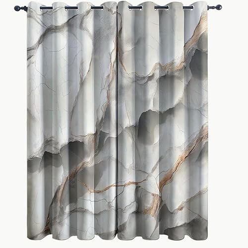 Rideau Occultant L 140 x H 245 cm (2 Panneaux),100% en Polyester Doux Oeillets Lumiere Anti UV Lignes marbre pliées la Confidentialité Gris Clair Chambre