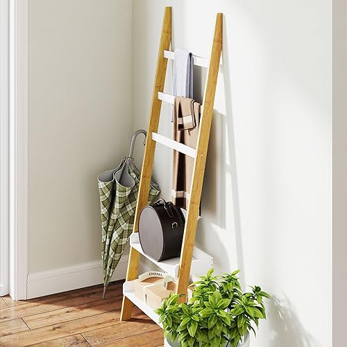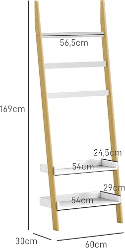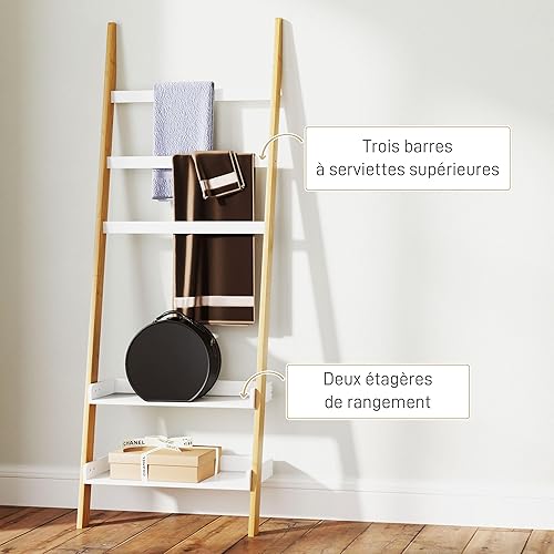 HOMCOM Porte-Serviettes Échelle à 5 Niveaux Échelle à Vêtements avec 2 étagères Gain de Place pour Salle de Bain, Chambre, Salon, Blanc