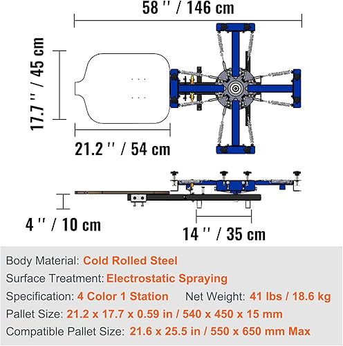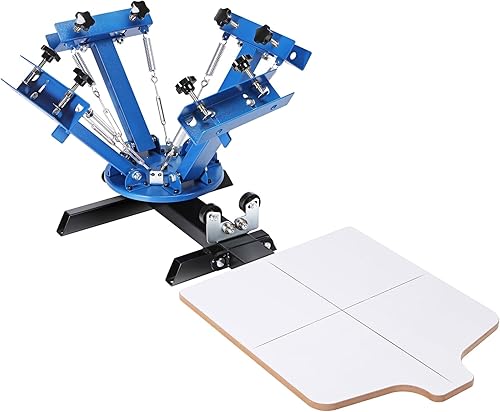 VEVOR Machine de Sérigraphie 4 Couleurs 1 Station Presse à Sérigraphie Plateau 54 x 45 cm Machine d'Impression à Écran Rotative à 360° pour Impression à Plat T-shirt Vêtements Bois Plastique Papier
