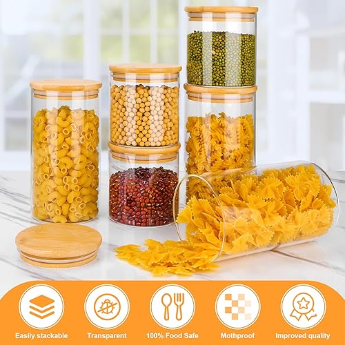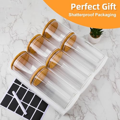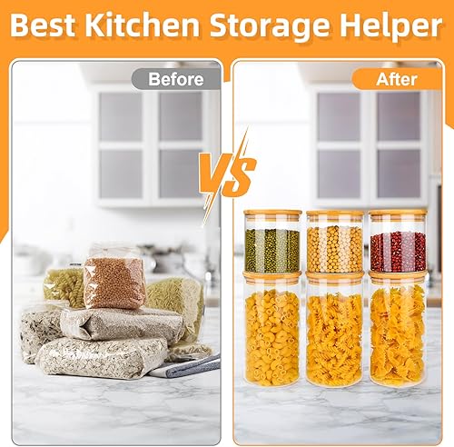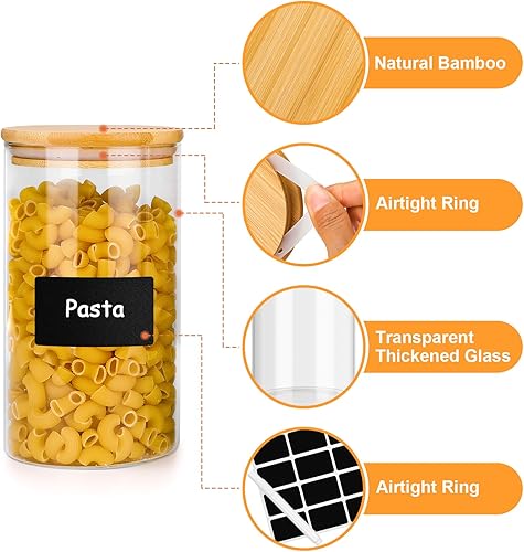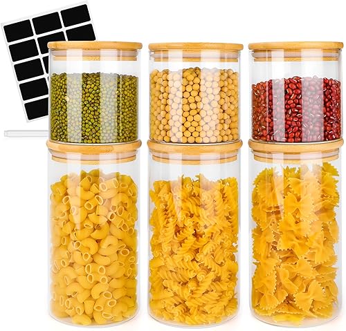 Otauoaea Bocaux en Verre, Bocaux Rangement Cuisine Hermétique, Pot en Verre avec Couvercle, Verre avec Couvercle en Bambou pour Farine, Pâtes, Spaghettis Set en 6 (3×1400ml, 3×780ml)