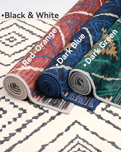 DEFYNEE Tapis de Salon Lavable en Machine 60x180 cm Tapis antidérapant, Tapis de Chambre pour Le Salon, l'entrée, la Chambre et la Cuisine, Vert foncé