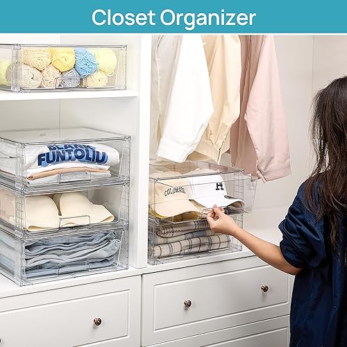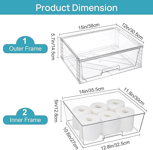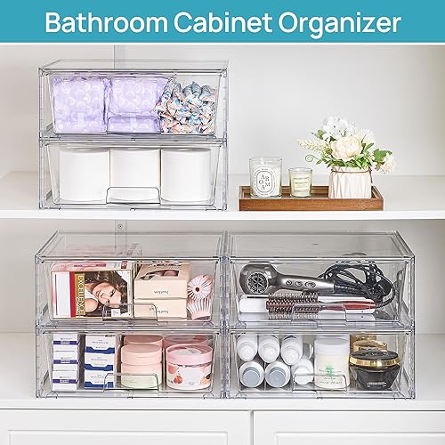 Vtopmart Lot de 2 grands tiroirs de rangement empilables en acrylique pour armoires de cuisine, garde-manger, maquillage, médicaments