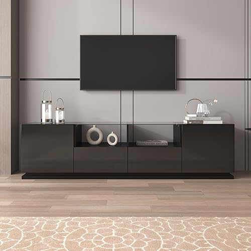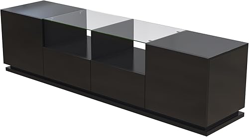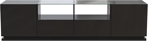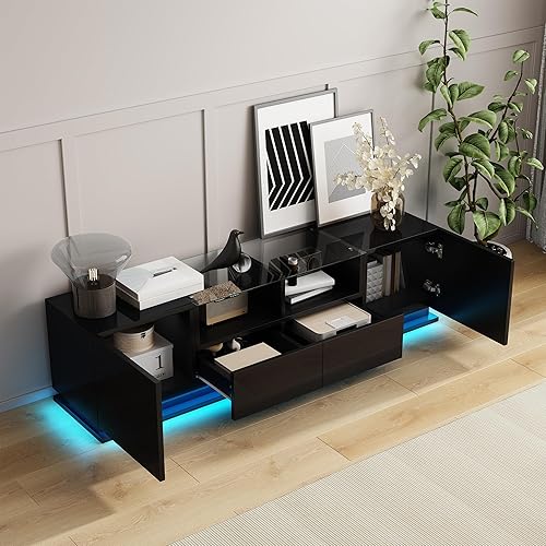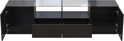 Merax Meuble TV très brillant avec étagères en verre, 2 tiroirs et 2 portes, éclairage LED en 16 couleurs, meuble TV avec beaucoup d'espace de rangement pour le salon, 165 x 38 x 43 cm, noir