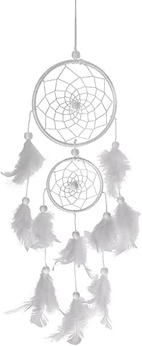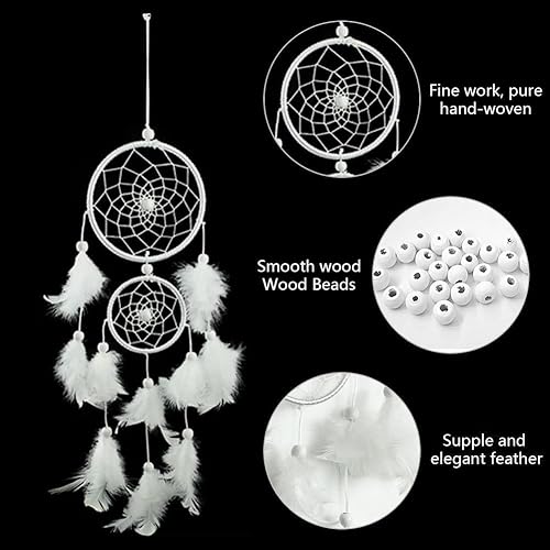 HOIER Attrape de Rêves, Capteur de Rêves en Plumes Dream Catcher, Handmade Attrape-rêves pour Décoration Chambre Voiture Maison, Blanc