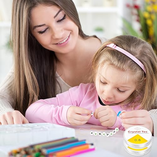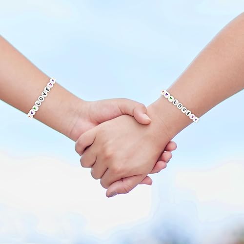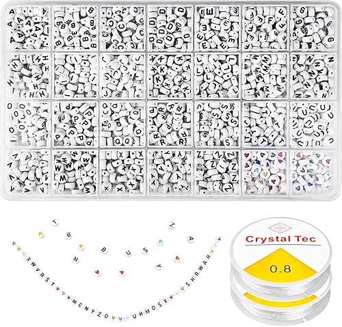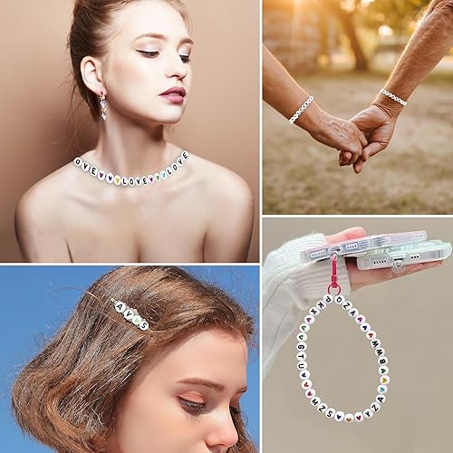 Relota 1400Pcs Perles pour Bracelet 7 X 4 mm, A-Z Blanc Perles Lettres Alphabet et Colorée Coeur Beads avec 2 Fil Elastique, pour Fabrication de Bijoux, Bracelets, Colliers, Enfants DIY Artisanats