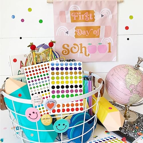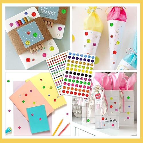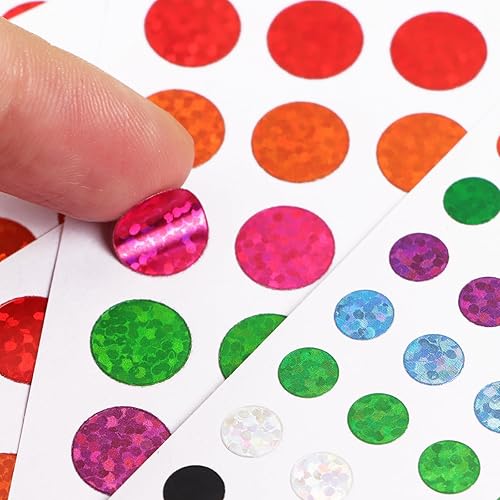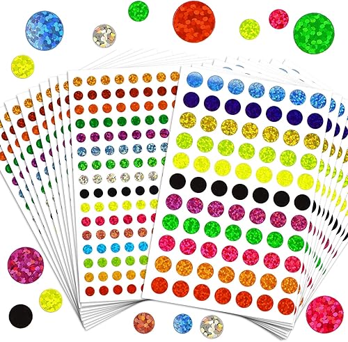 BETESSIN 2530Pcs Mini Gommettes Autocollantes Scrapbooking Stickers Ronds Multicolores Laser Enfants Récompense Encouragement Étudiants Enseignants DIY