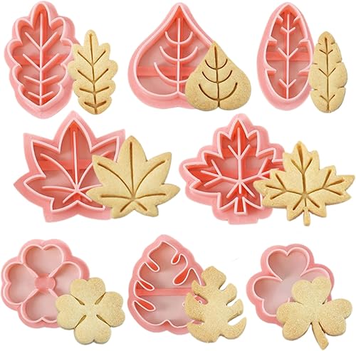 PTaizjjz Lot d'emporte-pièces en forme de feuilles - 8 formes de feuilles - Emporte-pièces en plastique pour biscuits, gâteaux, pâtisseries