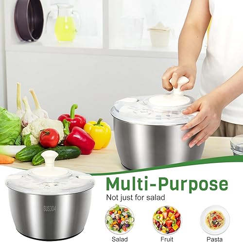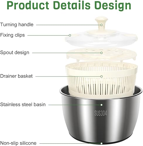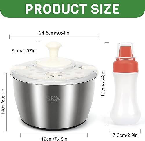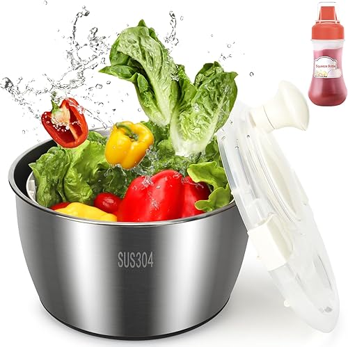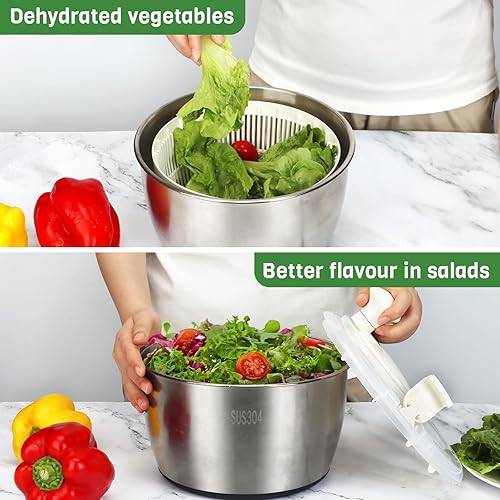 Ulable Essoreuse à Salade - Grande capacité de 4,7 l - en Acier Inoxydable - avec Bouteille Compressible - pour Fruits, légumes, Salade, Salade - avec poignée - Essoreuse à Salade