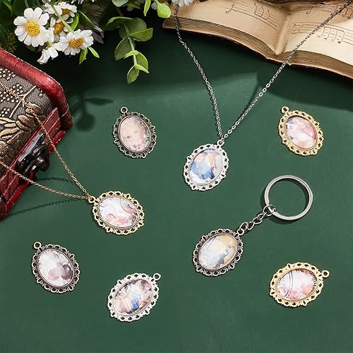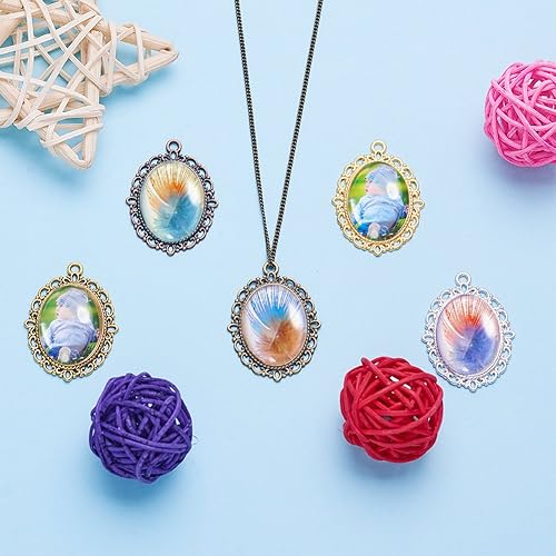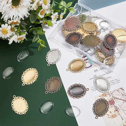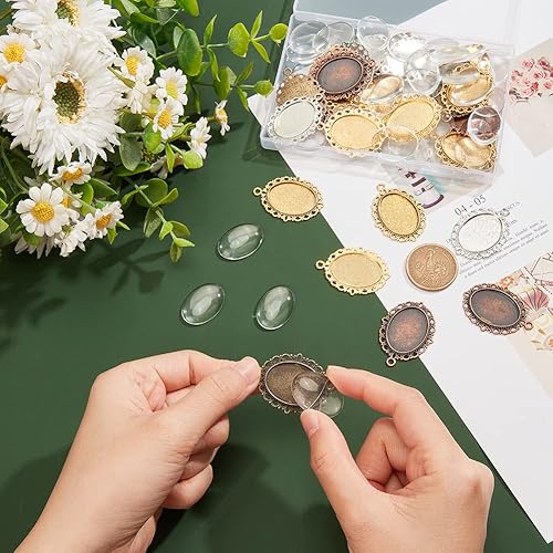 PH PandaHall Lot de 30 DIY Pendentif Sets Supports Pendentif en Alliage de Zinc et Cabochons en Verre Transparent Ovale pour la Fabrication de Bijoux, 5 Couleurs, Plateau: 25x18mm