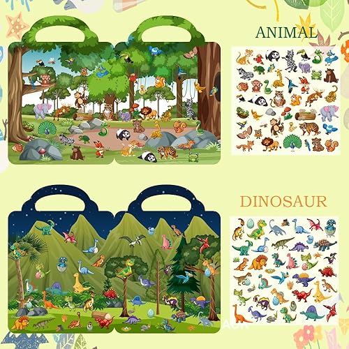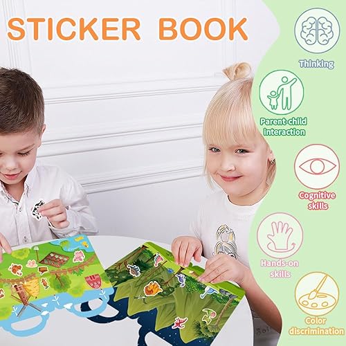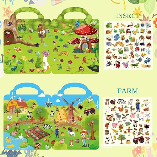 Aannanl 6 Pièces Livre Gommettes Enfants 2 3 4 5 Ans,Livre Stickers Enfant Activite Autocollant en 3D Réutilisable Inclut les Ferme, les Dinosaures, les Animaux, l'Océan, les Insectes
