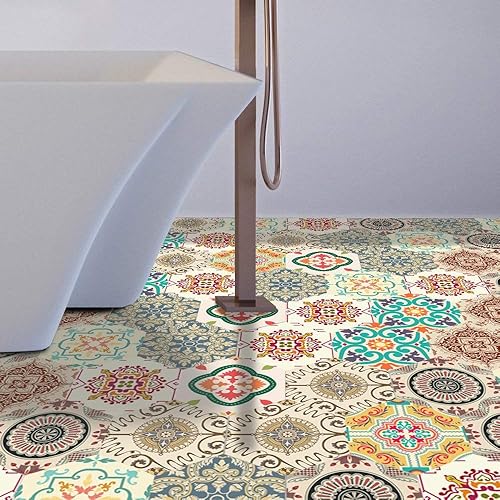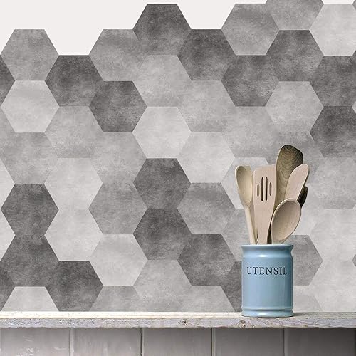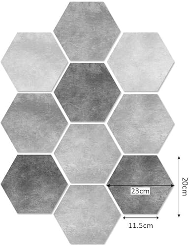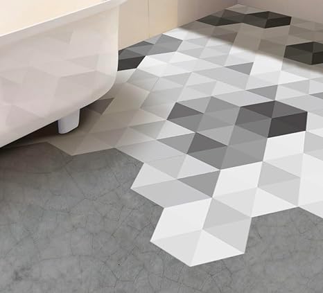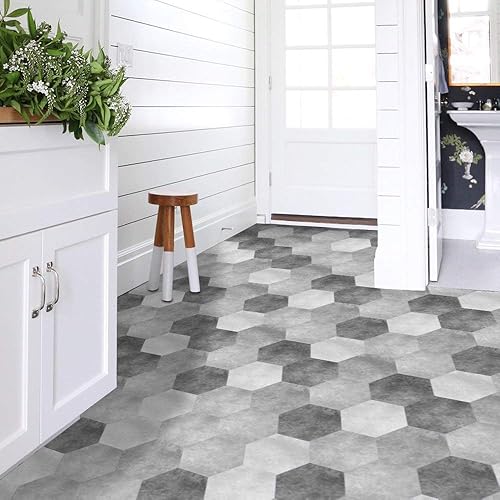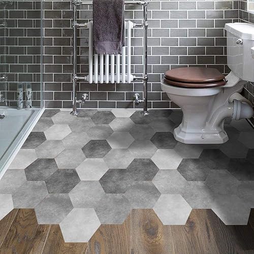 Funlife 30 PCS Hexagone dalle pvc adhesive sol, DIY dalle sol vinyle adhésive, peel and stick tiles carrelage adhesif sol, Imperméable cuisine salle de bain 20cmX23cm(dégradé de gris noir et blanc)