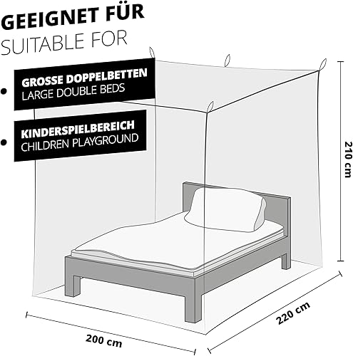 Lumaland Moustiquaire 200x220x210cm pour par ex. un lit double, convient aussi à l'extérieur | Protection contre les insectes particulièrement renforcée et robuste | Mailles fines, longue durée de vie