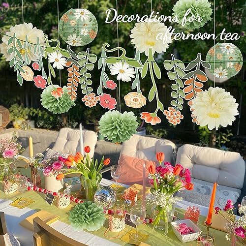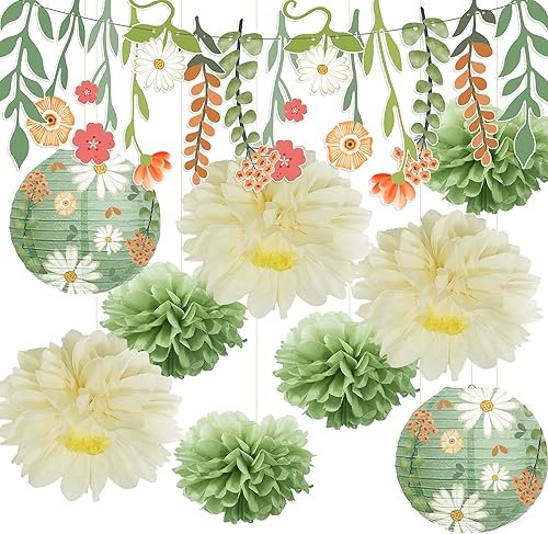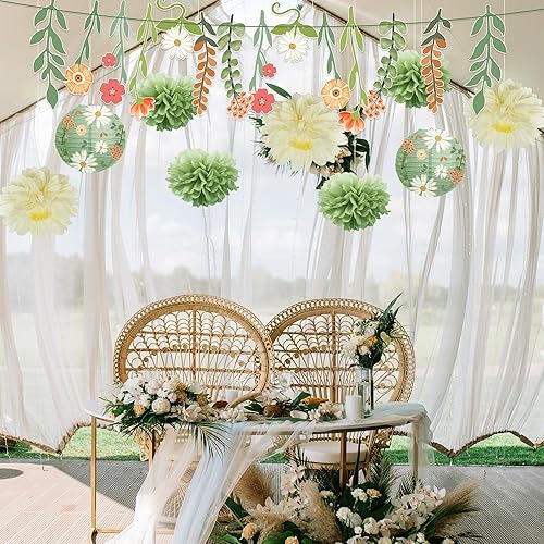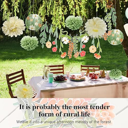 Syoulin-decoration bapteme champetre,deco anniversaire,decoration mariage,lanterne papier|guirlande|Pompon Papier,Couleurs douces, décoration de fête en forêt naturelle