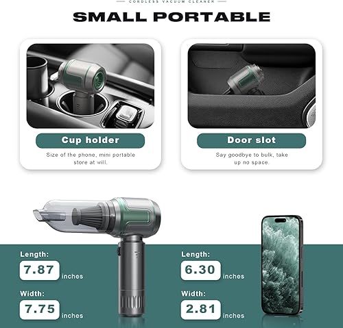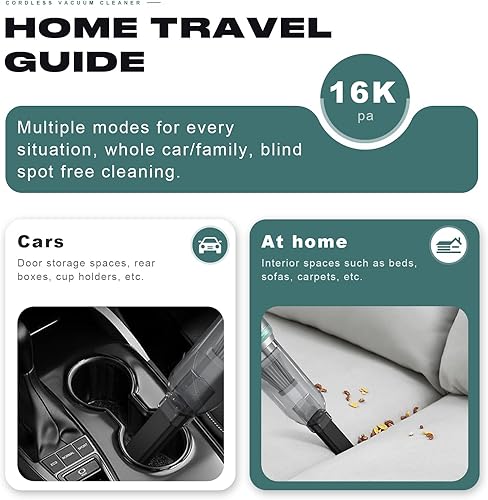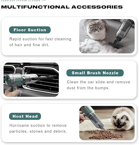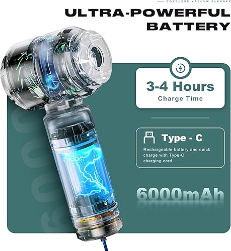 Tidy Cats Aspirateur à Main, 16000PA Portable Mini Aspirateur Voiture Puissant sans Fil, 3 Vitesses 6000mAh Batterie Aspirateur de Voiture sans Fil pour Poils d'animaux, Voiture, Maison