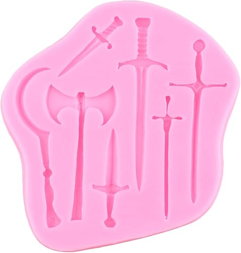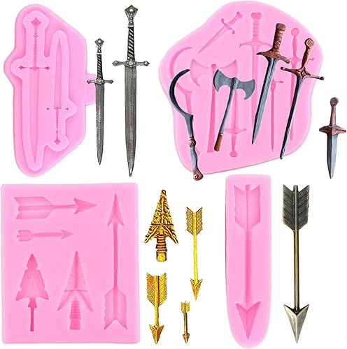 RFGHAC Lot de 4 moules en silicone en forme d'épée en forme de hache de bataille pour fondant, flèche, chocolat, pour décoration de gâteaux, décoration de cupcakes, pâte à sucre, pâte polymère