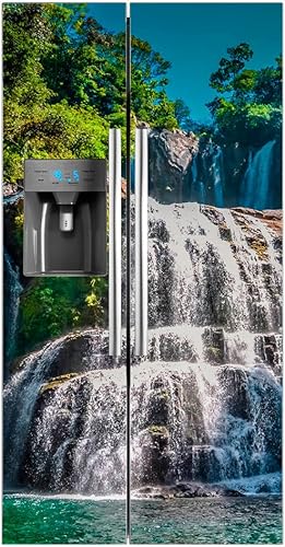 Vinyle pour réfrigérateur américain cascade échelonnée Plusieurs tailles Autocollants de réfrigérateur économiques et élégants Vinyle réfrigérateur 90x180cm