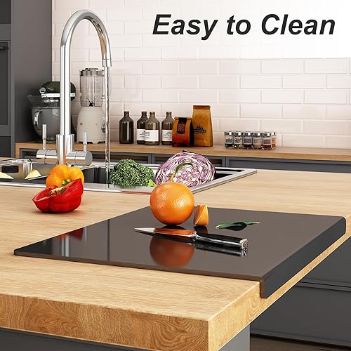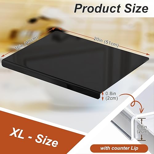 Planche à découper acrylique JJL avec lèvre de comptoir, Noir, 51 x 40 cm - sans bisphénol A, Antidérapante, Hygiénique, Pour protéger les comptoirs de cuisine, Cadeaux créatifs