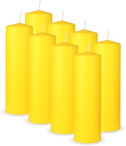 HS Candle Lot de 8 bougies piliers « Orange » - Diamètre : 7 x 20 cm - Longue durée de combustion jusqu'à 65 heures - Bougies colonnes non parfumées - Plusieurs couleurs/tailles
