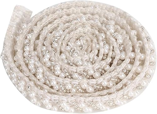 Jenngaoo Ruban Adhésif Perlé de 1 Mètre, Vêtements Faits à la Main, Accessoires de Couture Brodés pour la Couture Artisanale, Décoration de Vêtements de Mariage(1cm Blanc)