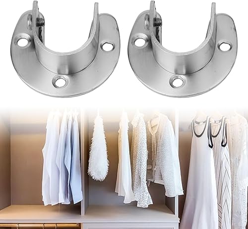 Lot de 2 supports de tringle à bride en acier inoxydable pour armoire et salle de bain (32 mm)