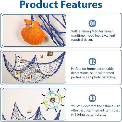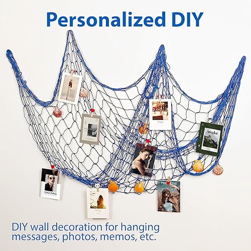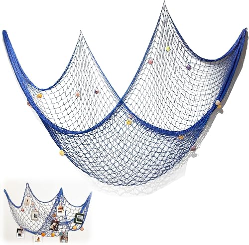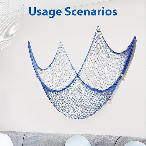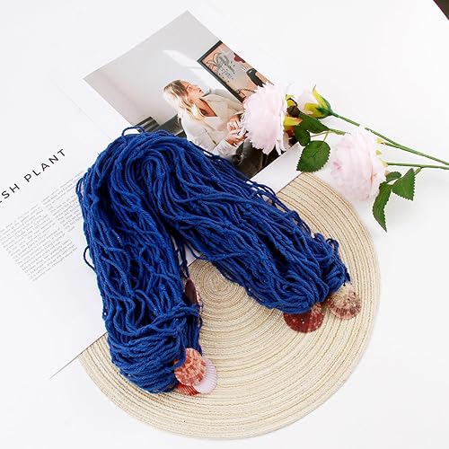 JRILUO Filet de Pêche Décoratif Bleu avec Coquillages, 100x200 cm Décoration Murale Méditerranéenne, Accessoire de Décoration Maritime pour Accrocher des Photos pour Chambre, Salon, Fête