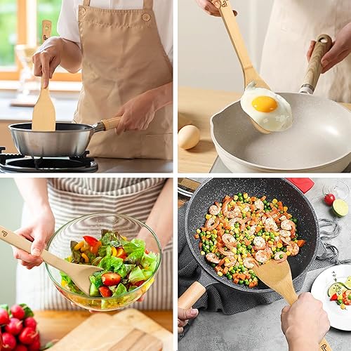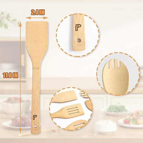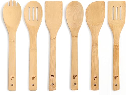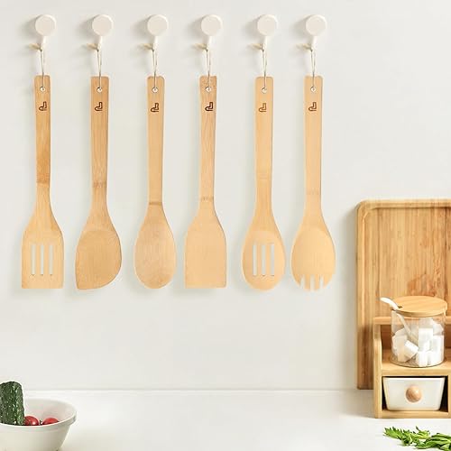 Lot de 6 cuillères en bois de bambou pour la cuisine – Spatule en bois antiadhésive pour la cuisine, ustensiles de cuisine en bambou naturel, ensemble d'ustensiles de cuisine en bois de qualité