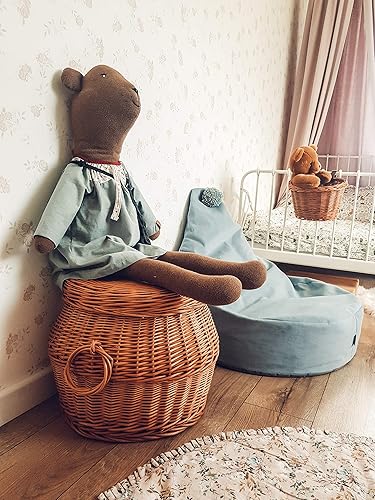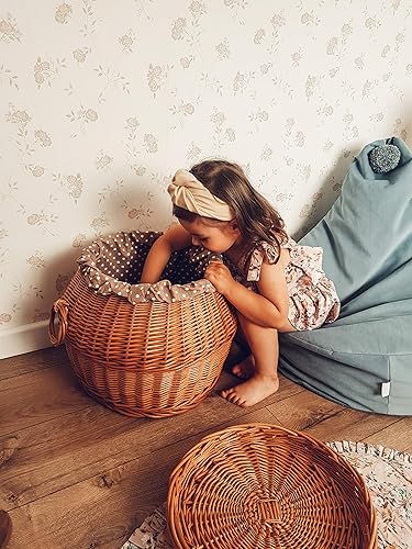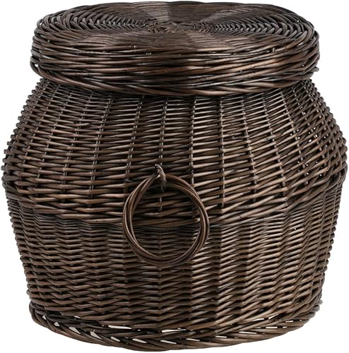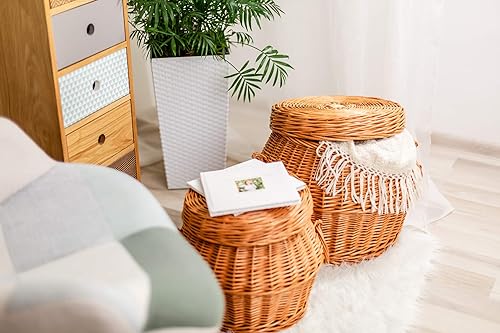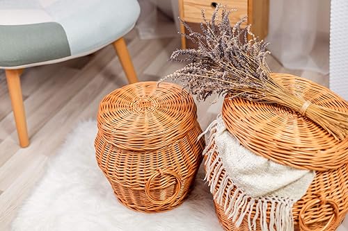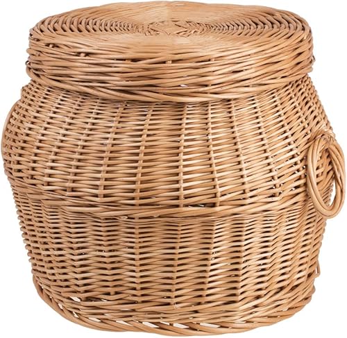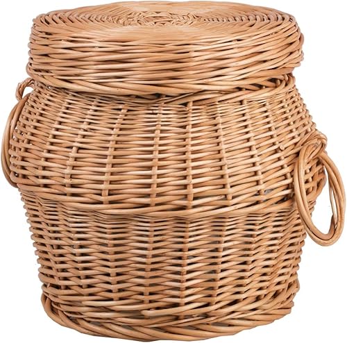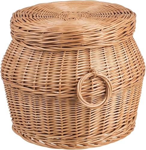 e-wicker24 Pouf de Rangement Coffre de Rangement, Panier rond avec couvercle en osier buff. (Ø: 31 H32, Naturel)
