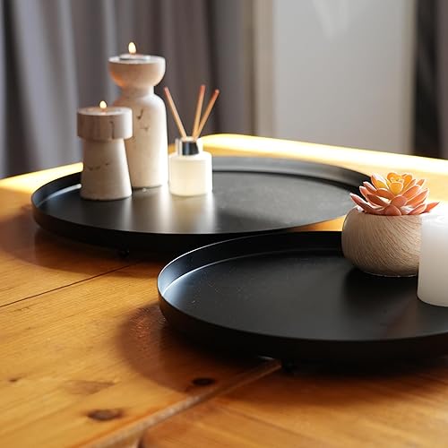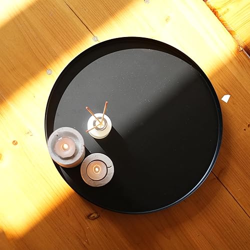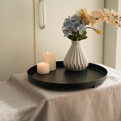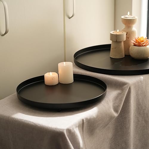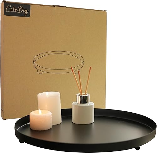 CeleBig® Plateau décoratif rond Ø 40 cm - Assiette décorative et plateau décoratif en métal noir avec 3 pieds stables - Plateau de service noir mat - Décoration de table - Support pour bougies