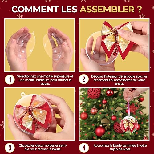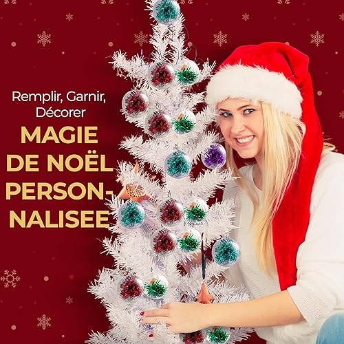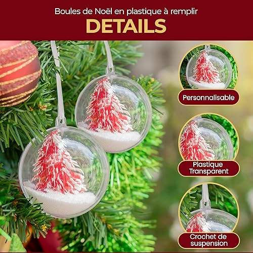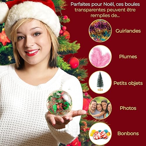 Lot de 20 Boules de Noël Transparentes de 10 cm à Décorer - Boules de Noël Transparentes à Personnaliser- Décoration de Noel DIY pour Sapin, Maison..