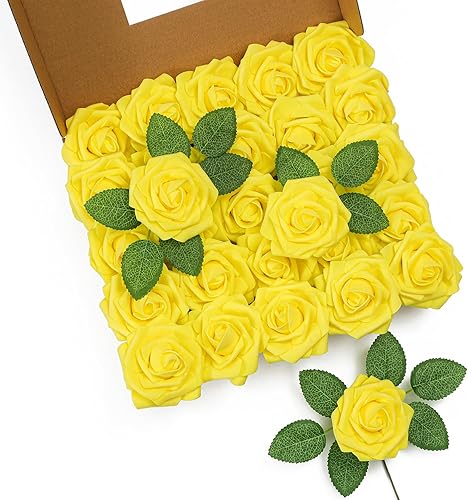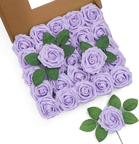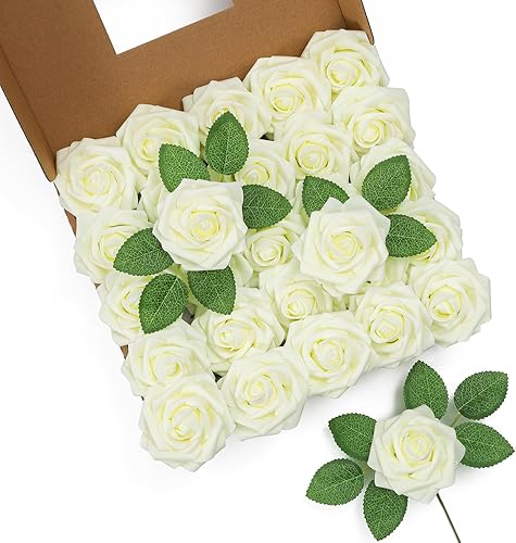LEUCHTAMOR Lot de 25 roses artificielles blanches laiteuses en mousse au toucher réaliste pour bouquets de mariage, centres de table, arrangements floraux, fête, décoration d'intérieur