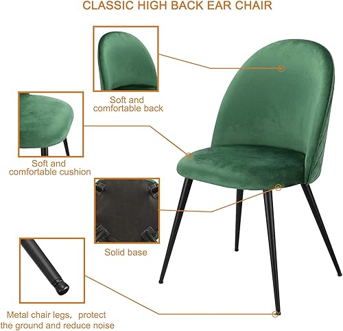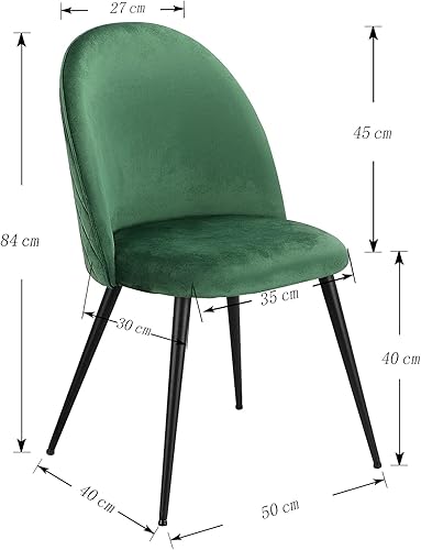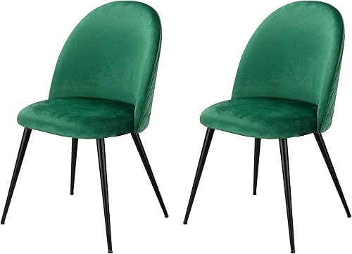 SANSHREUNI Lot de 2 chaises de salle à manger rembourrées avec dossier en velours doux et pieds réglables en métal pour salon ou chambre à coucher (Greem)