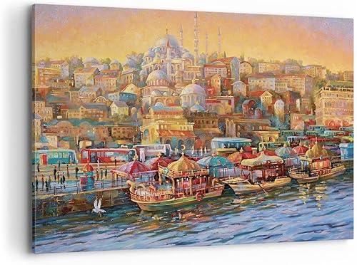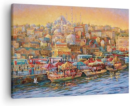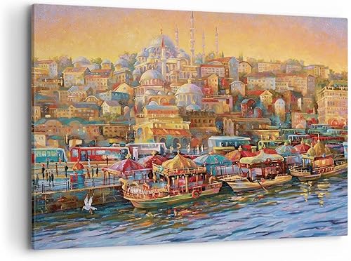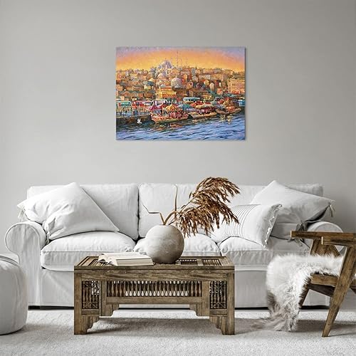 Deco Cadre Décoration Salon Couleurs Ville Turquie Moderne Impression sur Toile 120x80cm Image Tableau Decoration Murale Chambre Horizontal Art Wall Grand Tableaux Decoratifs Muraux AA120x80-4987