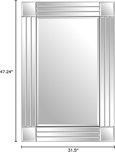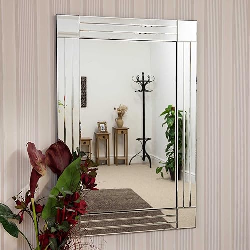 MirrorOutlet YC020-1 Miroir Mural d'angle carré Moderne en Verre biseauté 120 x 80 cm, sans Cadre, rectangulaire