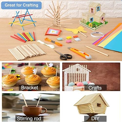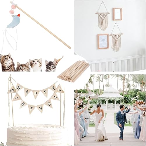 KINDPMA 20 Pièces Tiges en Bambou pour Loisirs Créatifs Bâtonnet Bois 30cm Bâtons en Bois pour Barbe à Papa 8mm Baguette Bois Ronde pour Travaux Manuels Artisanat Projets Artistiques Décorations