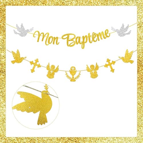 Yontree Decoration Bapteme Garçon Decoration Bapteme Fille Baptême Décoration de Gâteau Baptême Banderole