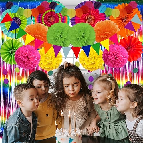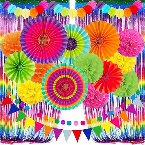 ZERODECO Or et Noir Décorations de Fête, Papier à Suspendre Fan Pom Poms Guirlande Chaîne Bannière Rideaux à Franges Fêtes d'Anniversaire Graduation Mariage Happy New Year Eve Décorations de Fête