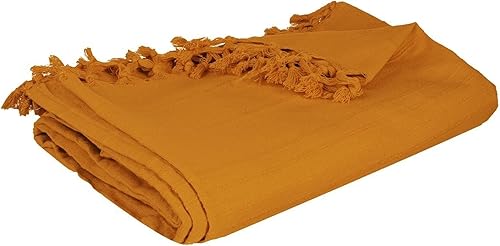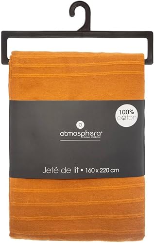 Atmosphera - Jeté de lit en Coton - Jaune Moutarde 160x220 cm