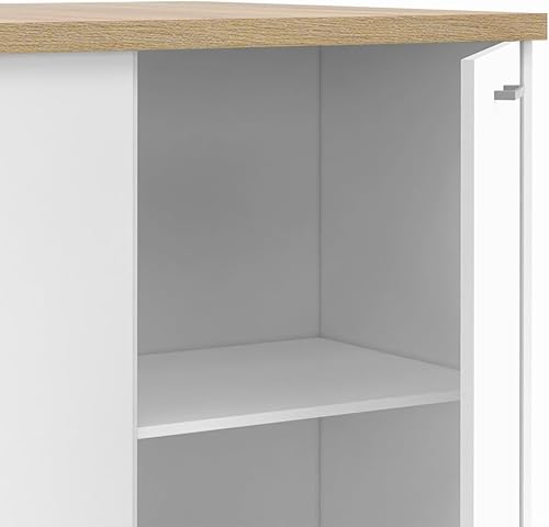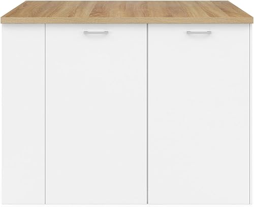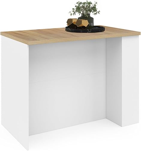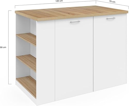 IDMarket - Ilot central TIBO 120 cm bois blanc avec plan de travail façon hêtre